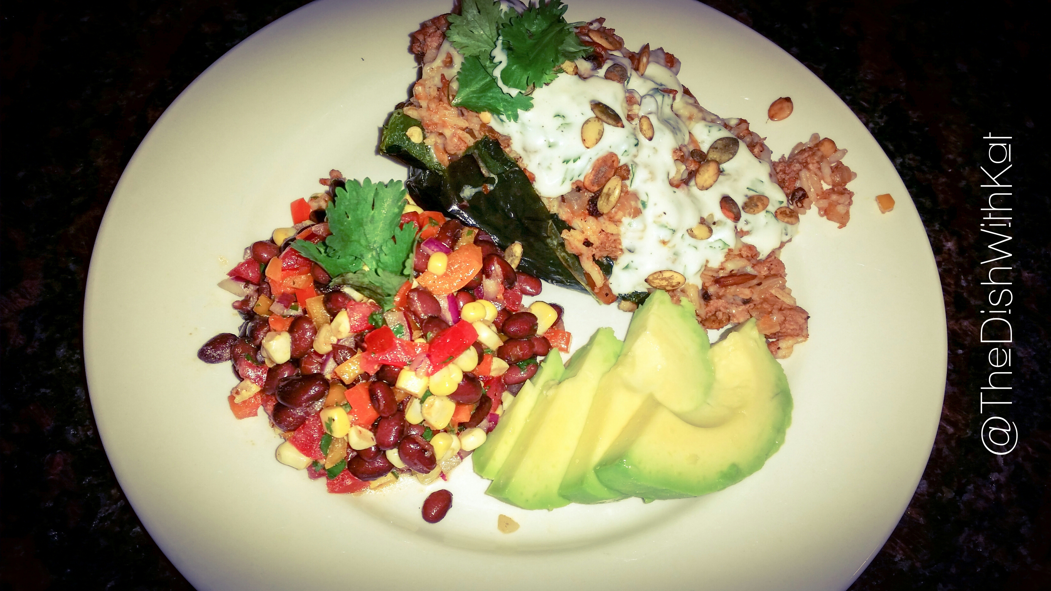 Here’s the dish! On Sunday, I cooked Blue Apron‘s Rice & Beef-Stuffed Poblano Peppers with Lime-Crema Sauce. It was packed full of flavor and delicious. My eyes are often larger than my stomach, so I thought I would need more than just the stuffed pepper for dinner. I later found out I was incorrect in this decision, but the black bean and corn salad I whipped up to accompany the stuffed peppers was a nice accent to the meal. As with many Blue Apron meals, I made a few modifications. Here’s how you can put your own twist on this flavorful Blue Apron meal!