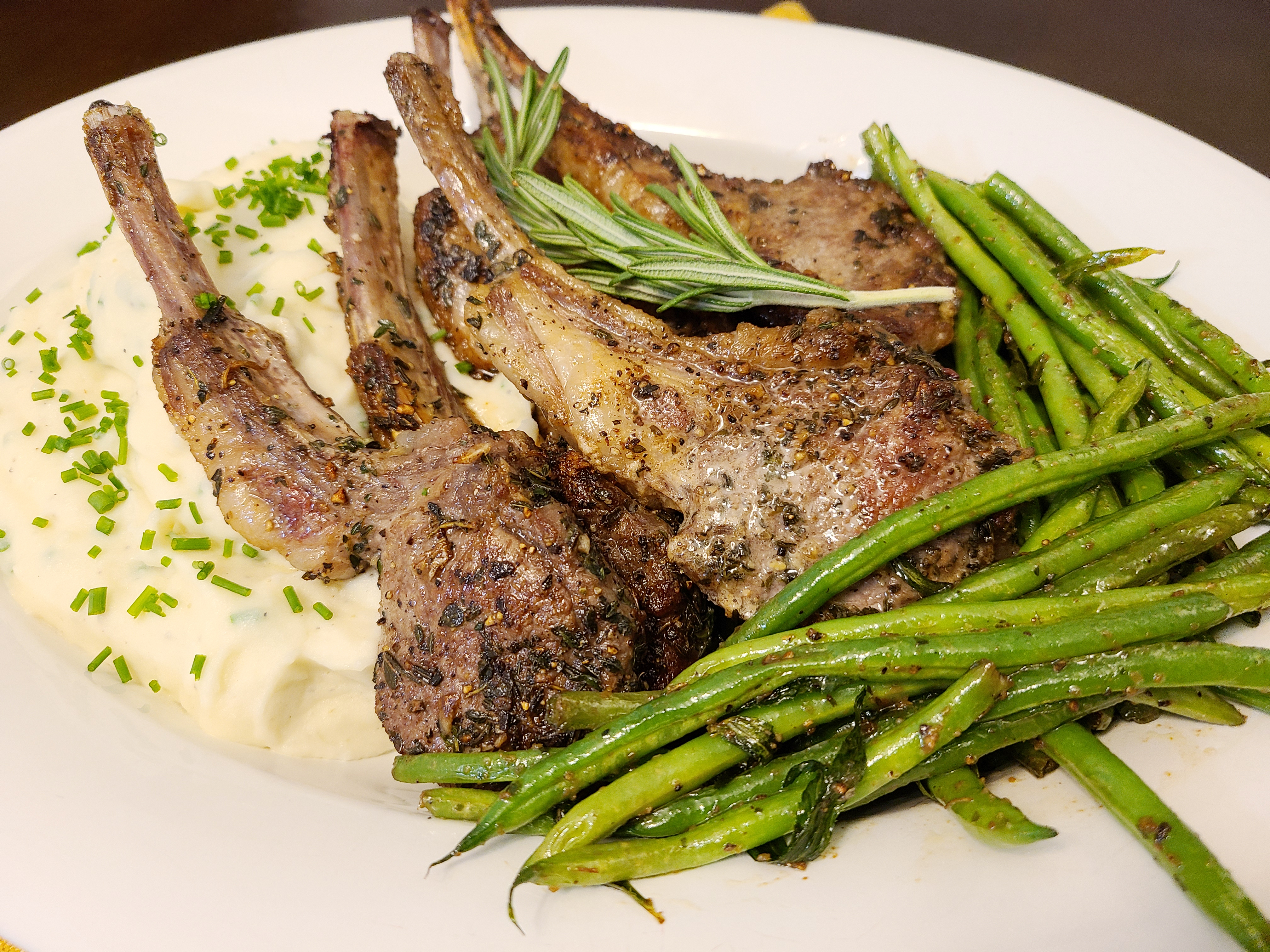 Lamb is the other red meat we often forget about. It can often be prepared in a similar fashion as beef (butter-basted in a cast iron skillet is my go-to). It’s easy to marinate and can pack lots of flavor. One of my favorite ways to enjoy lamb chops is with fresh herbs, so I decided to incorporate them in not only the lamb, but the sides as well! Enjoy this delicious recipe of Garlic & Herb Lamb Chops with Whipped Chive Potatoes & Tarragon Haricots Vert.