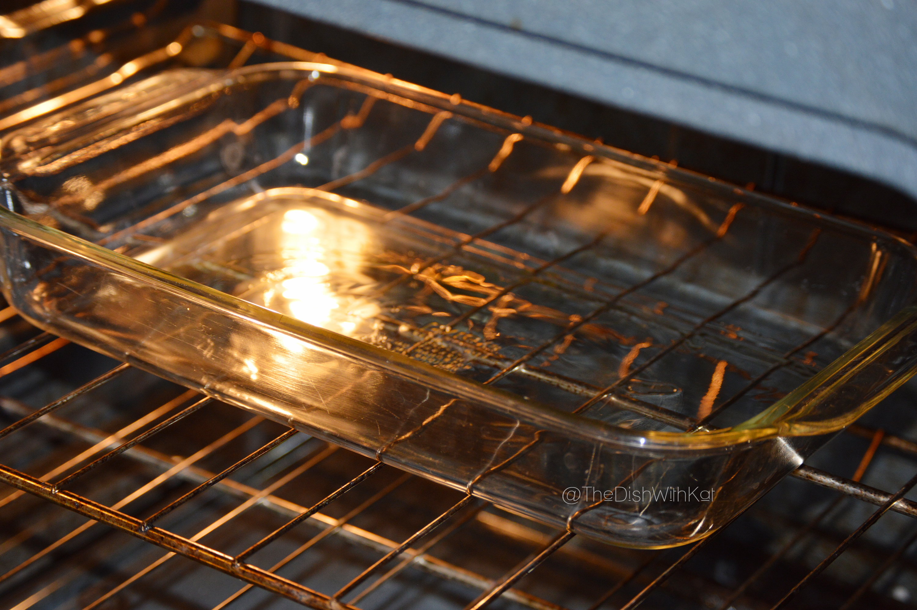 Preheat the oven to 425°. Once preheated, swirl one tablespoon of the oil around your baking dish and heat it in the oven for at least 10 minutes. My grandma always cooked her cornbread in a cast-iron skillet, but a Pyrex dish works just fine—it just needs to be hot!
